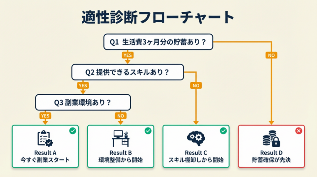 職種を選ぶ際、初期費用・収益化スピード・スキルの汎用性という3軸で評価することが継続率を高める上での核心です。好き嫌いだけでなく、この3軸を先に確認することで、3か月後に「やっぱり違う」となるリスクを大幅に減らせます。