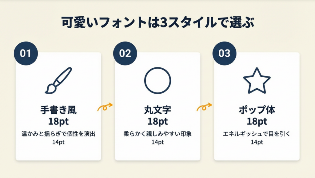 手書き風・丸文字・ポップ体の3スタイルから用途に合わせて1つ選んだ