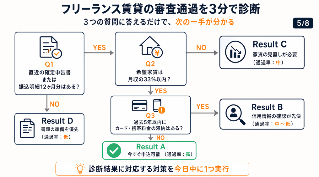 フリーランス賃貸の審査通過を3分で診断