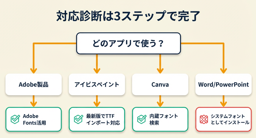 「自分の環境でこのフォントは使えるのか」と迷ったら、以下の診断で3分以内に判定できます。