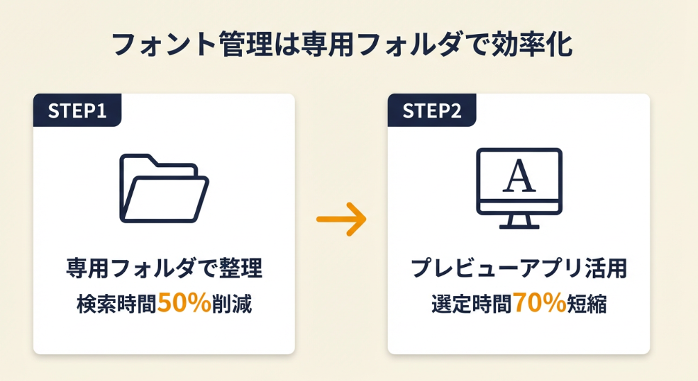 実は、フォント管理を仕組み化するだけで「あのフォントどこだっけ」と迷う時間がなくなります。