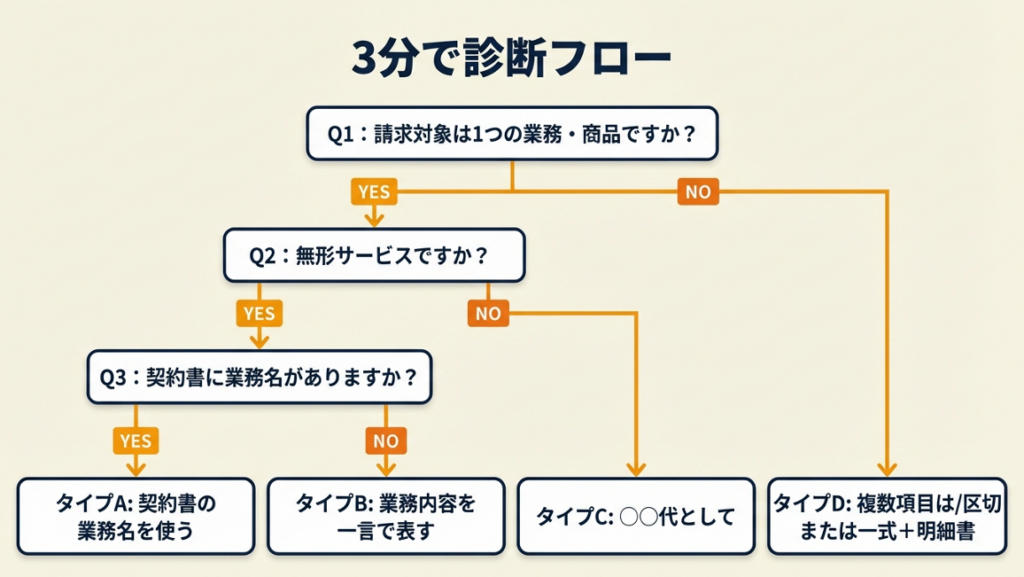 Q2: 請求対象は無形サービス(制作・コンサル・執筆等)ですか?