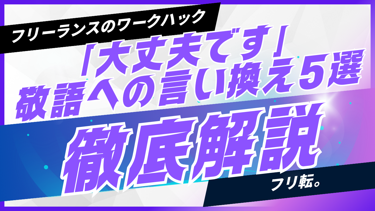 「大丈夫です」は敬語ではなく、ビジネスでは「承知いたしました・問題ございません・差し支えありません」の3表現に場面別で置き換えるのが最短の解決策です。受諾なら「承知いたしました」、問題なしなら「問題ございません」、日程確認なら「差し支えございません」と覚えるだけで、ほぼすべての場面に対応できます。フリーランスにとっては表現の丁寧さが直接的な信頼構築につながるため、今日から1表現だけ実践してください。