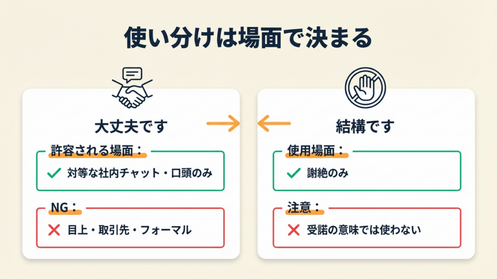 「結構です」との使い分けは謝絶場面に限定