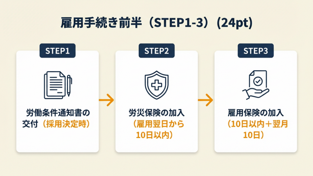 手続き3:雇用保険の加入(10日以内+翌月10日まで)