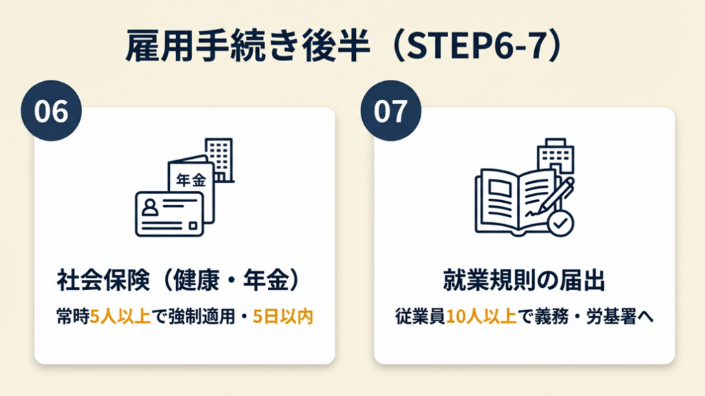 - 社会保険加入要否の確認(5人以上で強制適用業種は必須)