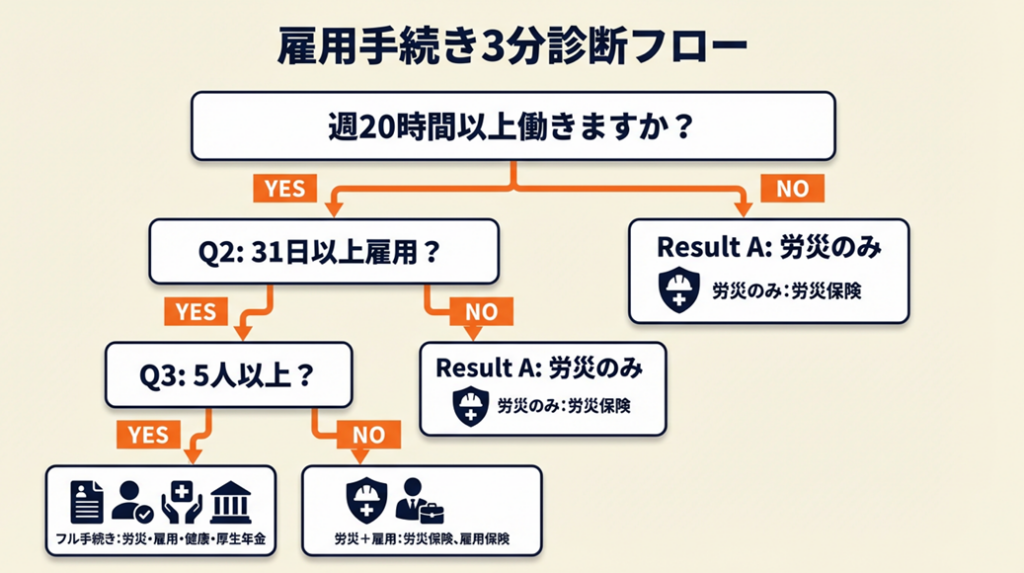 | 自分の状況が手続き対象か診断したい | 個人事業主の雇用手続きを3分で診断 | 3分 |