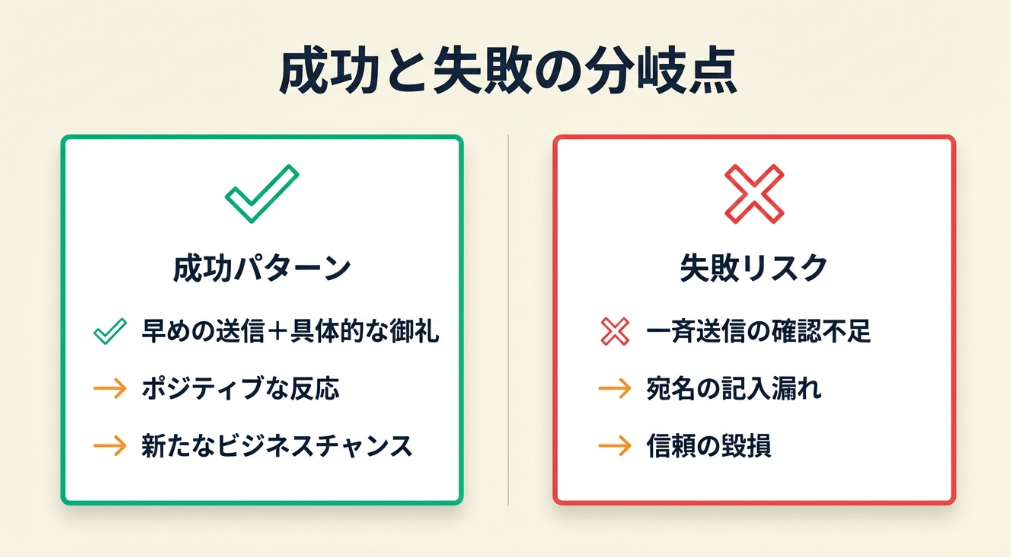 大切なのは「何を書くか」よりも「いつ書くか」です。最終営業日の駆け込み送信は相手に読まれない可能性が高く、早めの行動が最大のマナーになります。