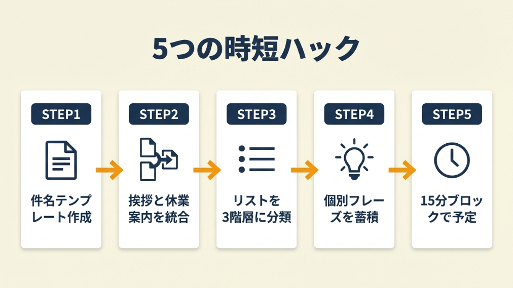 ハック2: 1通のメールで挨拶と休業案内を完結させ、送信数を50%削減