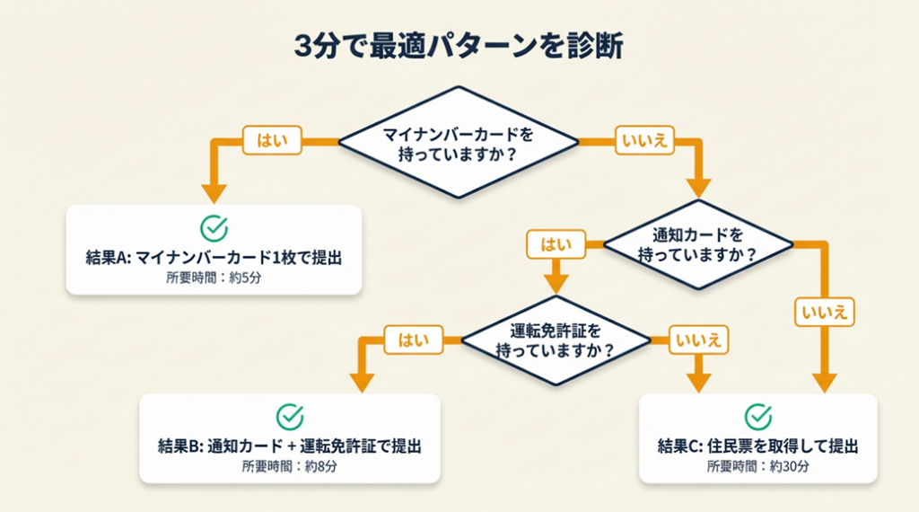有効な組み合わせは2パターンに絞られます。自分の手元にある書類を確認し、どちらのパターンで進めるかを先に決めておくと、準備がスムーズに進みます。