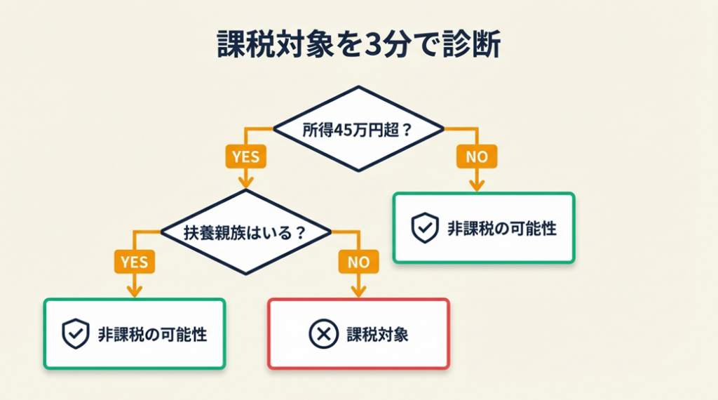 非課税基準は自治体によって異なるため、居住地の市区町村ホームページで必ず最新情報を確認してください。確定申告の要否や所得の考え方については「確定申告はいくらから」で詳しく解説しています。