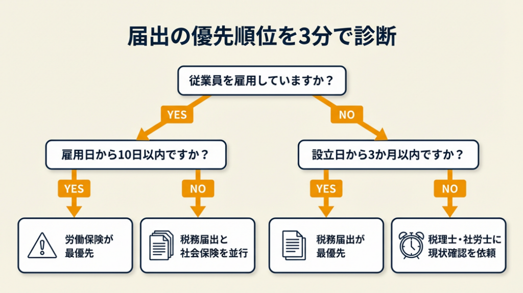 | 自分の優先順位を診断したい | 会社設立届出の優先順位を3分で診断 | 3分 |