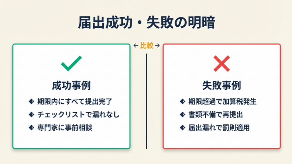 - 【効果】: 届出漏れを0件にし、加算金リスクを回避できる