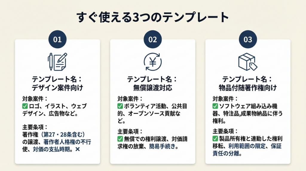 - 【対象】: 月3件以上の著作権譲渡案件を抱えるフリーランス