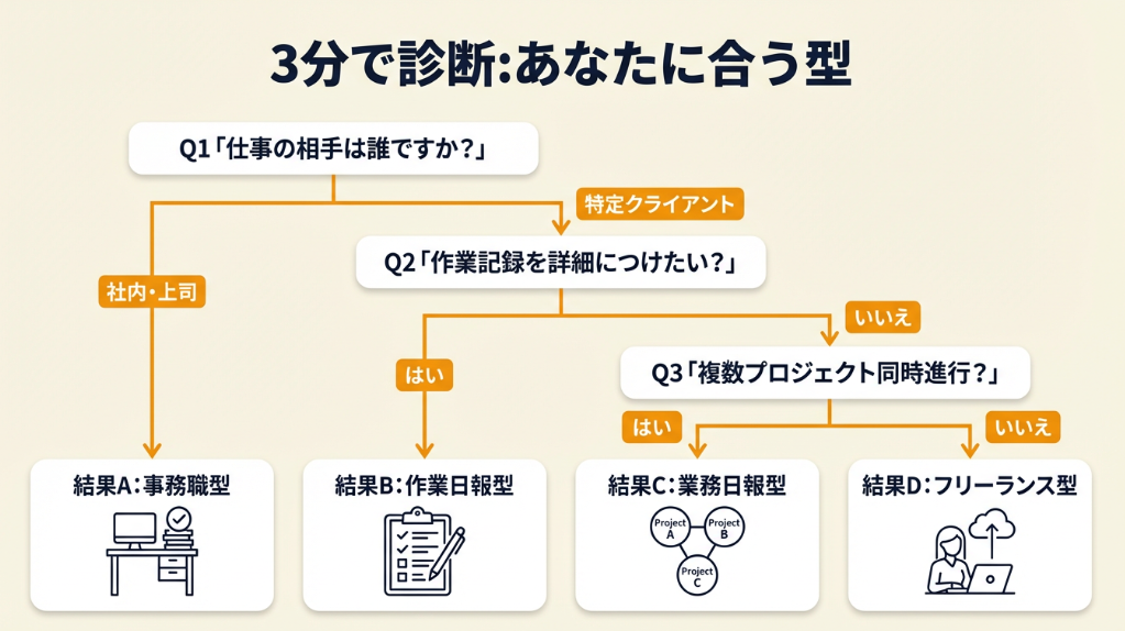 | 自分の型を診断したい | 日報の書き方を3分で診断 | 3分 |