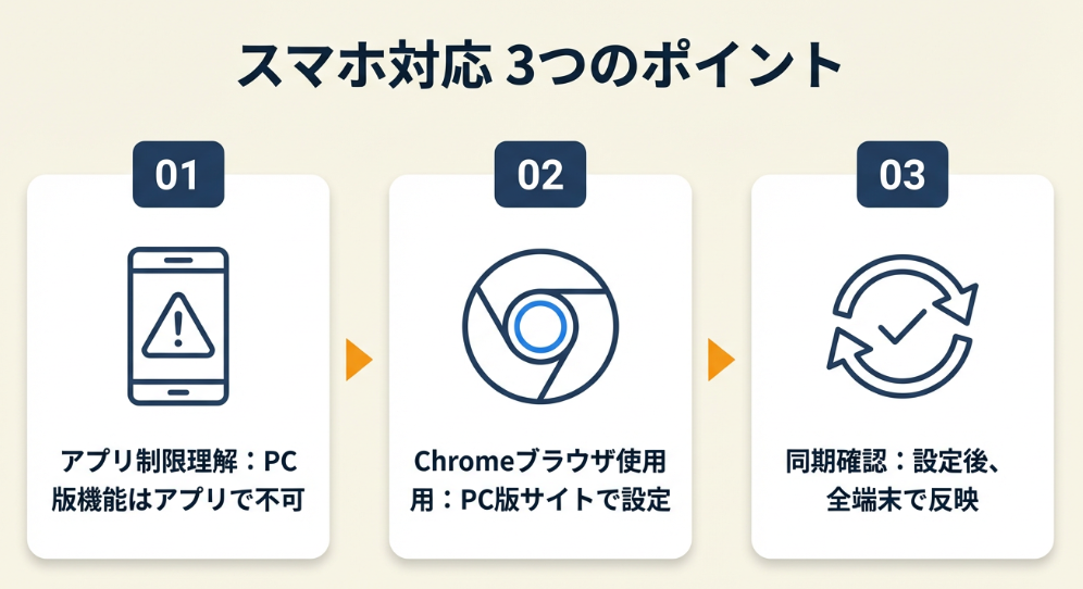 「アプリ版では設定が難しかった。PCブラウザで設定したら、アプリでも自動に適用されるようになった」というユーザーの報告があります(Androidアプリでのフィルタ体験談)。