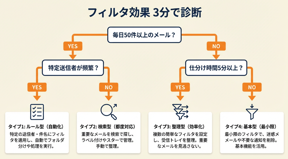 自分に合うフィルタか診断したいGmailフィルタの効果を3分で診断3分