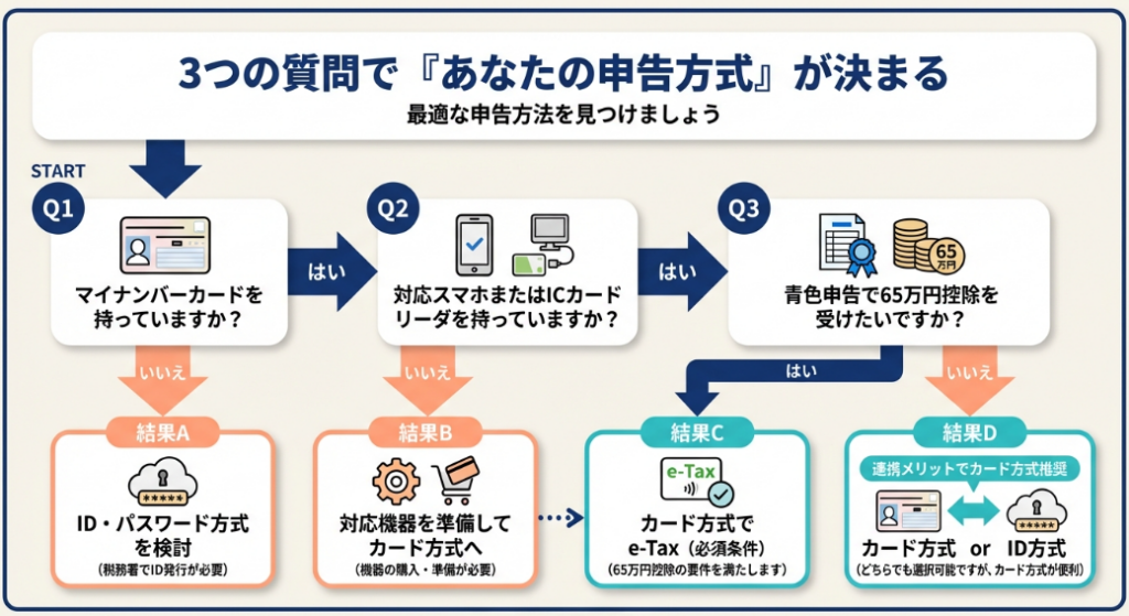 | 結果C | マイナンバーカード方式でe-Tax申告を行う(65万円控除の必須条件) |