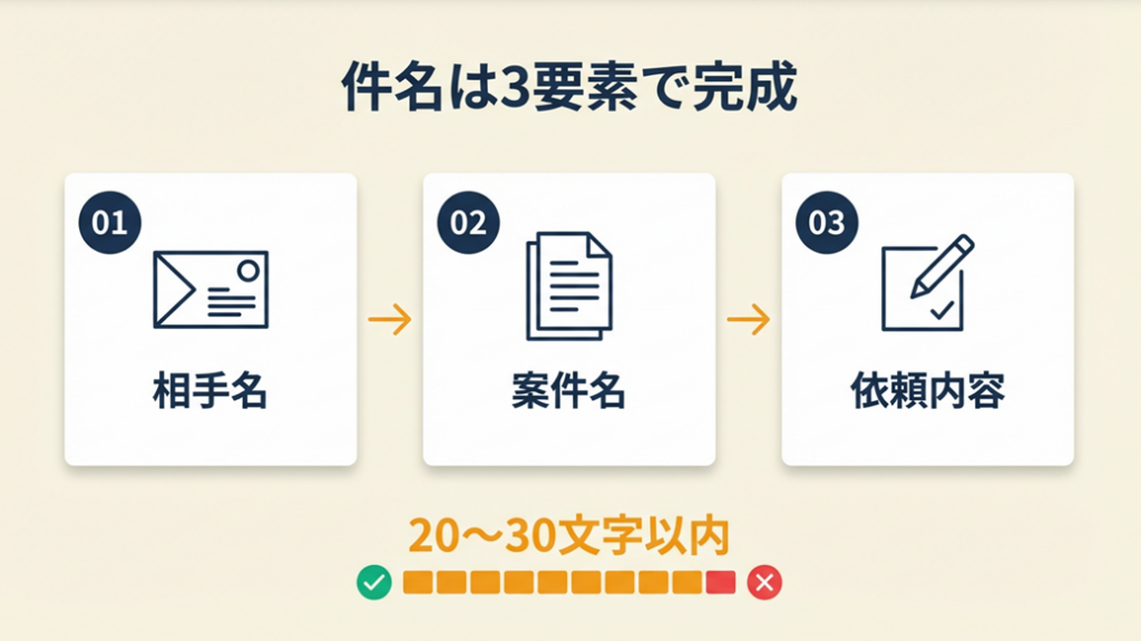3要素は相手名・案件名・依頼内容