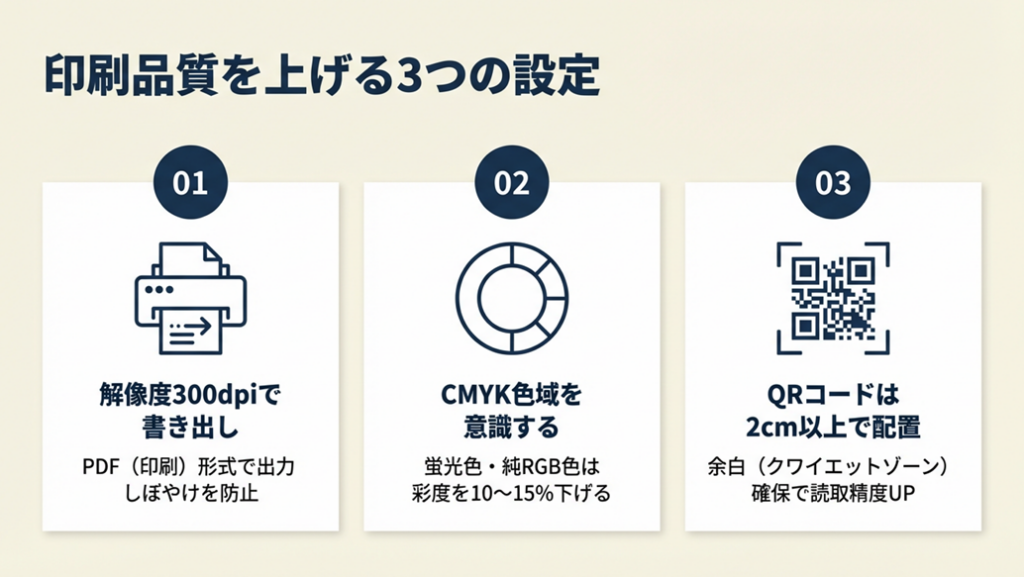 -> 解像度・カラー・QRコード・SNSサイズ・配色の5点を確認してから最終データを書き出す(10分)
