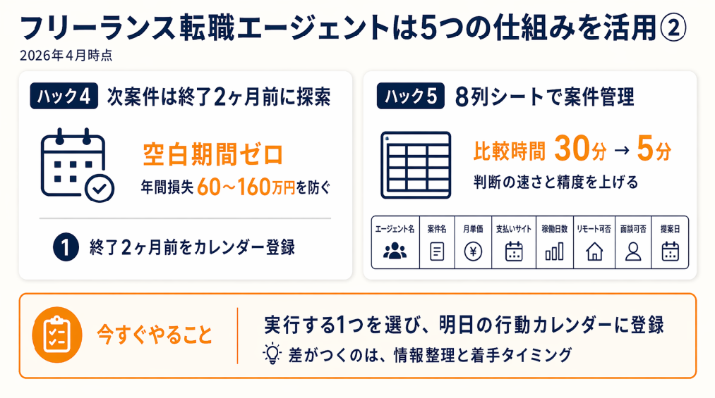 ハック4: 案件終了2ヶ月前に次案件の探索を開始して空白期間をゼロにする