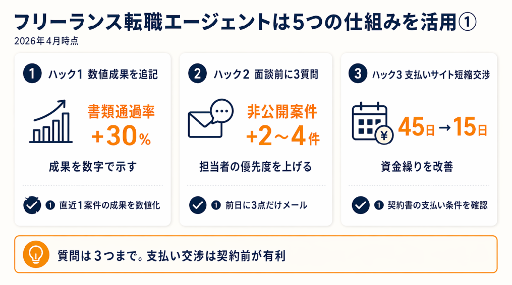 実務ハックを取り入れたいフリーランス転職エージェントは5つの仕組みを活用7分