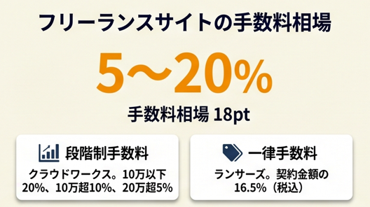| 手数料や報酬の仕組みを知りたい | フリーランス募集サイトの手数料は5〜20%が相場 | 3分 |