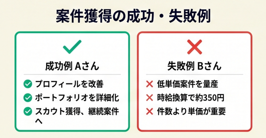 ケース2(失敗パターン): 手数料だけを見て低単価案件を量産