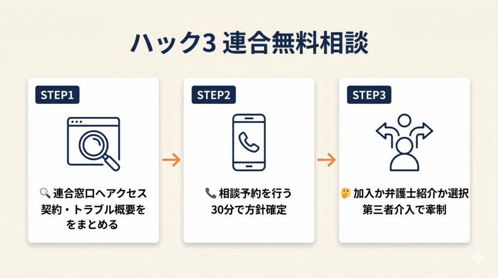 ハック3: 連合の無料相談で交渉方針を30分で確定