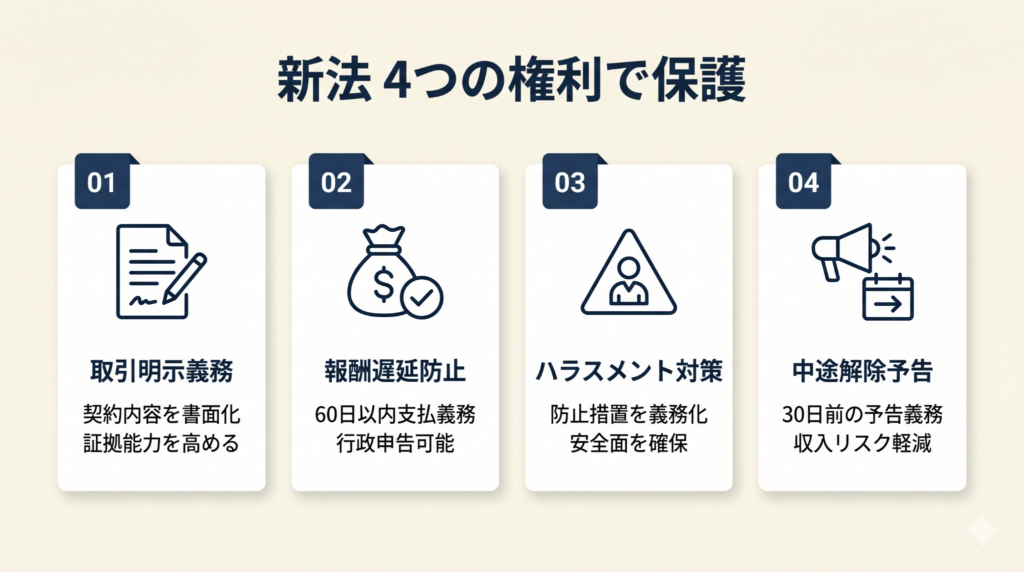 フリーランス新法は4つの権利で保護