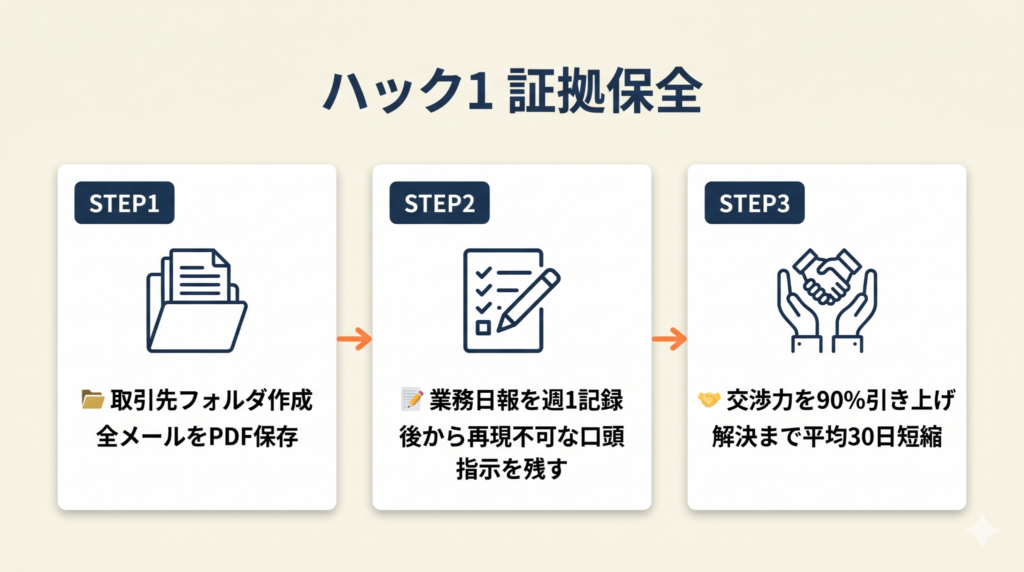ハック1: 証拠保全の仕組みで交渉力を90%引き上げる