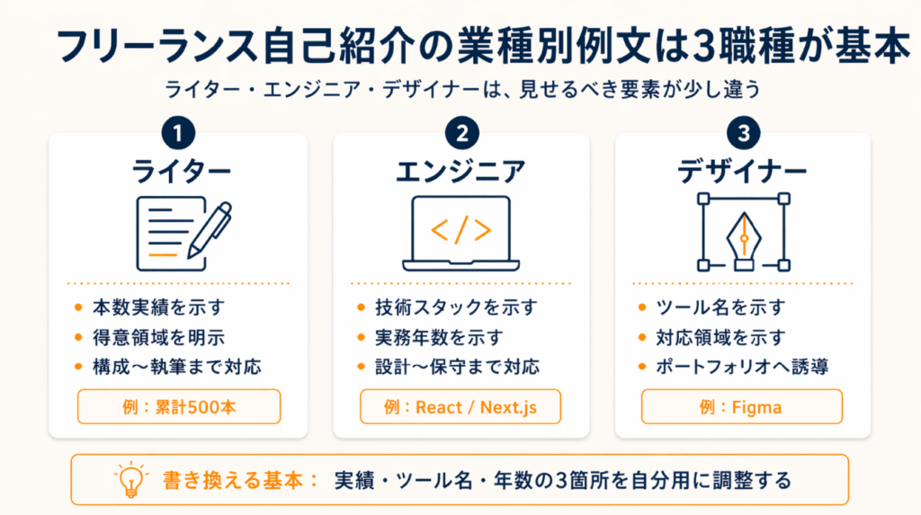 フリーランス自己紹介の業種別例文は3職種が基本