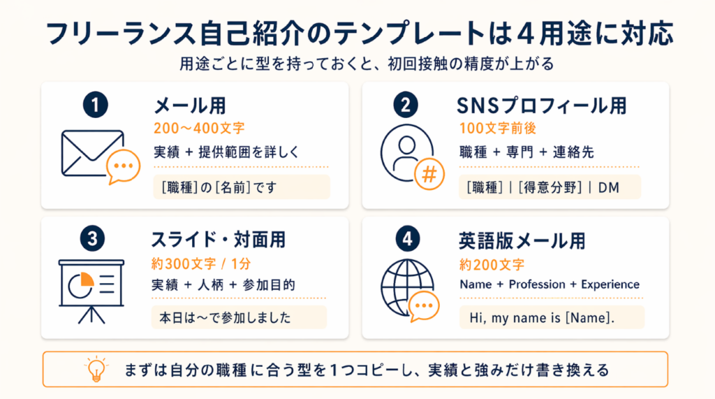 フリーランス自己紹介のテンプレートは4用途に対応