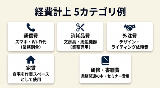 | 経費に何が入るか確認したい | 副業経費は5カテゴリで計上 | 4分 |