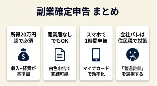 まとめ:フリーランス副業確定申告は所得20万円超で必須