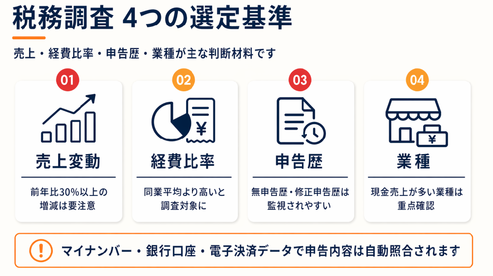 税務調査の選定は売上・経費比率・申告歴・業種で判断される