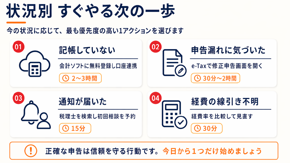 - [対象]: 申告漏れや誤申告に気づいたが、どう対処すべきか分からないフリーランス