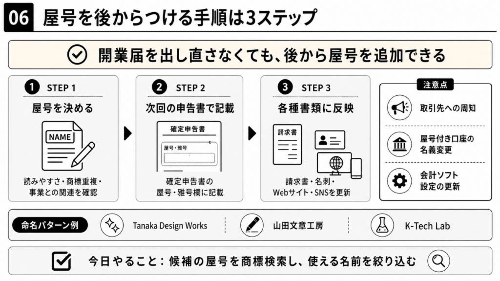 つまり、屋号は「必要になったときに追加できる任意のツール」と捉えることが、現実的で柔軟な判断につながります。