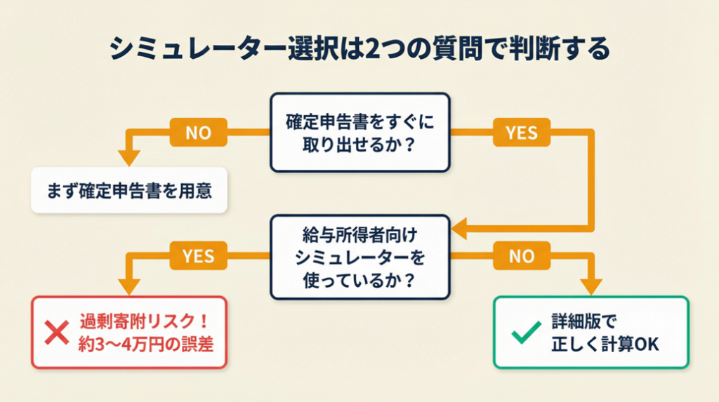 - 給与所得者向けシミュレーター使用で3〜4万円の計算誤差が生じるリスクがある