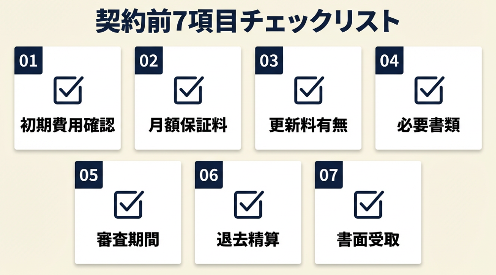 - 初期費用・月額・更新料の2年間総額を計算し、最安を特定する(5分)