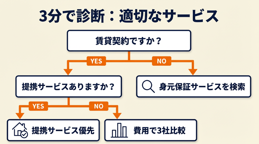 | サービスの選び方がわからない | 連帯保証人代行の対応を3分で診断 | 3分 |