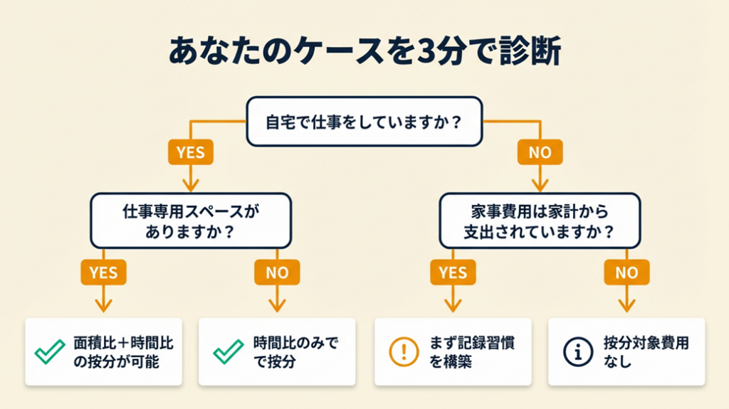 | 自分のケースで判断したい | 家事按分の対応を3分で診断 | 3分 |