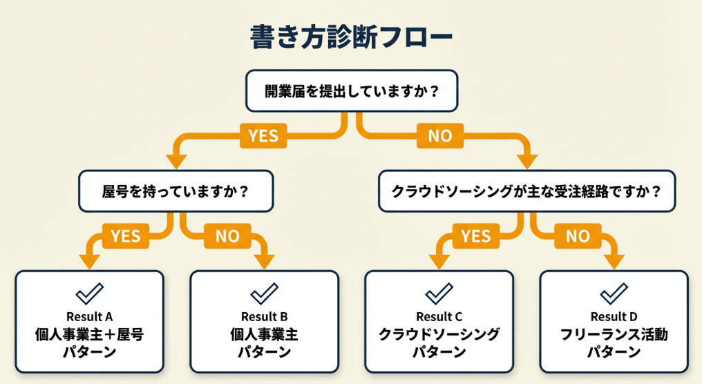 • はい → 【結果A】個人事業主+屋号パターン