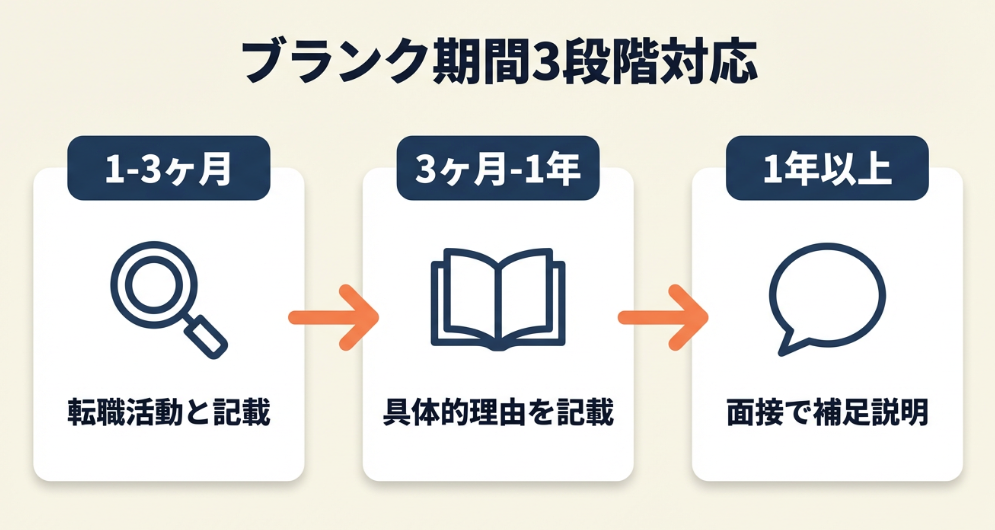 ブランク期間の長さによって書き方が異なります。自分のブランク期間に該当する段階を確認し、適切な説明文を作成してください。