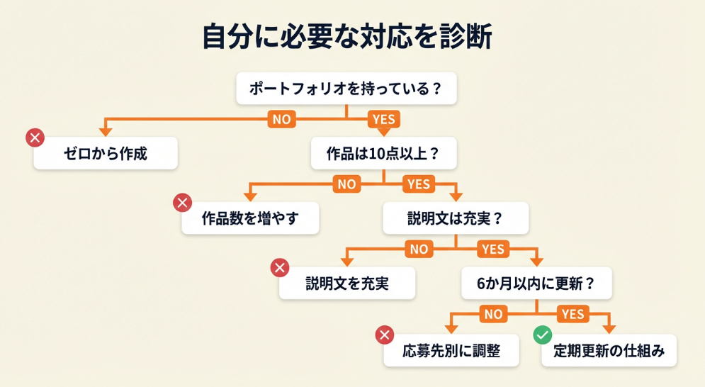 私の経験でも、作品数よりも「応募先に関連性の高い作品を厳選しているか」の方が評価されると感じています。ジャンル・テイストのバランスを考慮しつつ、古すぎる作品は定期的に入れ替えることで、常に最新のスキルセットを反映させてください。