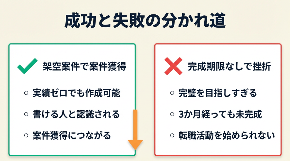 【なぜ効くのか】 採用担当者やクライアントは、多くの応募者と面談しています。ポートフォリオを持参する人は少数派であり、それだけで「準備がしっかりしている」という印象を与えられます。