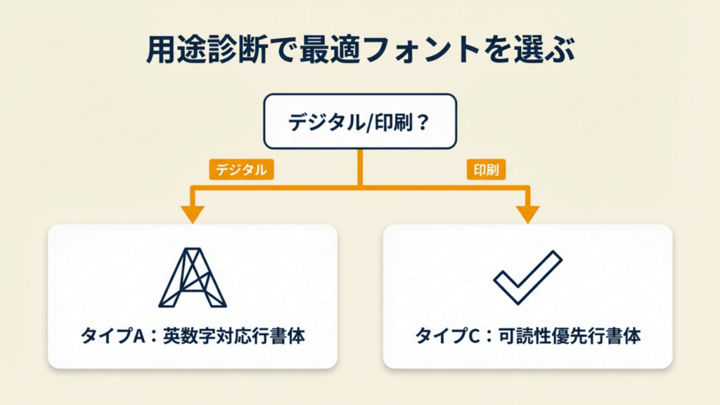 自分の用途に達筆フォントが合っているか判断したい場合は、以下の診断で3分以内にフォントのカテゴリを絞り込めます。