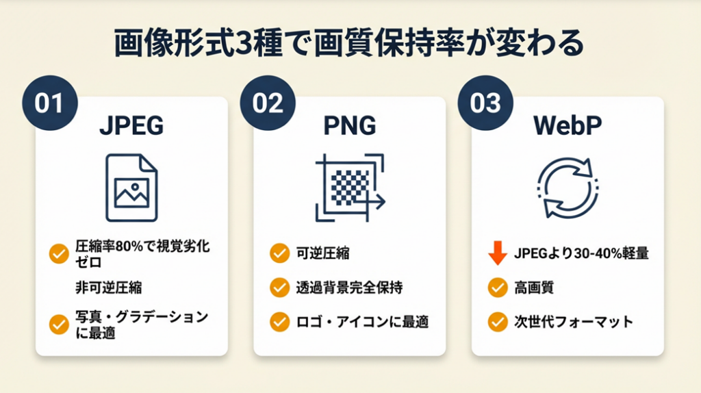 画像形式は3種で画質保持率が変わる