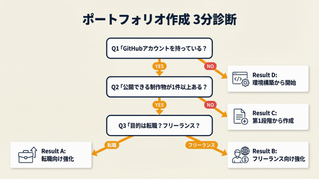 自分がどの段階のポートフォリオを作るべきか、3分で判定できます。
