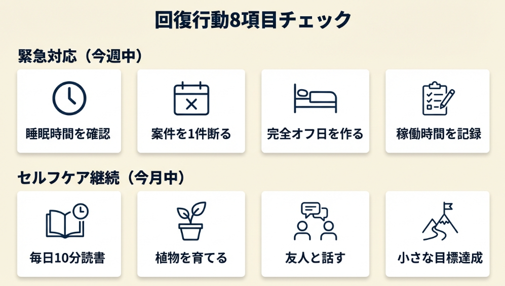 回復に向けた行動は8項目でチェック